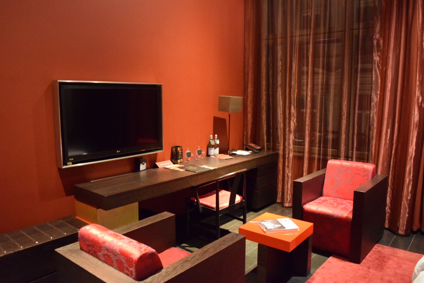 The surround system in the room was worth taking note of. I though people were talking outside my door, but it turned out to be the surround system in the bathroom from the TV. For some reason, I couldn’t get the sound on the television to work in the room, it was probably too technical for me. The walls of the room were heavily insulated, I could not hear a pin drop outside. I was cocooned away from the world. The entire interior design of the room coupled with the red and black theme made for a modern artistic retreat in the heart of Budapest. Loved it:)